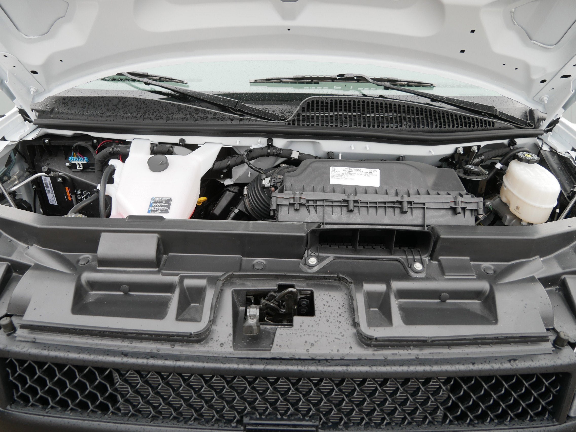 LPO Bluetooth® PHONE CONNECTION KIT (upfitter/dealer-installed). Plug and Play kit works with in-vehicle radio to add Bluetooth® calling and music streaming., DIFFERENTIAL HEAVY-DUTY LOCKING REAR, REMOTE VEHICLE STARTER SYSTEM, GLASS FIXED REAR SIDE DOOR WINDOWS, SEATS FRONT BUCKET WITH CUSTOM CLOTH TRIM head restraints and inboard armrests Includes (BA3) console with swing-out storage bin.), REAR AXLE 3.42 RATIO, THEFT ALARM NOTIFICATION requires paid plan working electrical system cell reception GPS signal armed GM factory-installed theft-deterrent system contact method on file and enrollment to receive alerts. Message and data rates may apply. See onstar.com for details and limitations, CRUISE CONTROL, TRAILERING PROVISIONS TRAILERING WIRE HARNESS ONLY, SUMMIT WHITE, AUDIO SYSTEM AM/FM STEREO WITH MP3 PLAYER seek-and-scan digital clock TheftLock random select auxiliary jack and 2 front door speakers (STD), ENGINE 6.6L V8 with Direct Injection and Variable Valve Timing gasoline (401 hp [299 kW] @ 5200 rpm 464 lb-ft of torque [629 N-m] @ 4000 rpm) Includes external engine oil cooler., BUMPERS FRONT AND REAR CHROME WITH STEP-PAD, KEY EQUIPMENT TWO ADDITIONAL KEYS FOR SINGLE KEY SYSTEM Provides two additional spare keys for a total of (4). (Keys will be cut but not programmed) NOTE: programming of keys is at customer's expense. Programming keys is not a warranty expense. (Shipped loose.), TIRE SPARE LT245/75R16E ALL-SEASON BLACKWALL located at rear underbody of vehicle (STD), TRAILERING EQUIPMENT HEAVY-DUTY includes trailering hitch platform and dual 4-pin/7-pin sealed connector Includes (UY7) trailer wiring.), ALTERNATOR 150 AMPS, WHEELS 4 - 16" X 6.5" (40.6 CM X 16.5 CM) STEEL includes Gray center caps and steel spare (STD), GLASS REAR DOORS AND SIDE CARGO DOORS (Includes (A12) fixed rear doors window glass and (A13) fixed rear side door window glass., BACKUP ALARM 97 DECIBELS Rear frame mounted back-up alarm, BODY STANDARD (STD), DRIVER CONVENIENCE PACKAGE includes Tilt-Wheel and (K34) cruise control, REMOTE KEYLESS ENTRY with 2 transmitters and remote panic button, DOOR SWING-OUT PASSENGER-SIDE 60/40 SPLIT (STD), WINDOW SECURITY BAR REAR SIDE DOOR GLASS, LIGHTING AUXILIARY with reading lights (Includes (U80) 8-point digital compass.), SEATING ARRANGEMENT DRIVER AND FRONT PASSENGER HIGH-BACK BUCKETS with head restraints and vinyl or cloth trim (STD), PAINT SOLID, VISORS DRIVER AND FRONT PASSENGER VINYL in lieu of standard cloth, WORK VAN PREFERRED EQUIPMENT GROUP includes standard equipment, OUTSIDE TEMPERATURE DISPLAY located in the Driver Information Center, GLASS FIXED REAR DOORS WINDOWS, COMPASS 8-POINT DIGITAL LOCATED IN THE DRIVER INFORMATION CENTER, TRANSMISSION 8-SPEED AUTOMATIC HEAVY-DUTY ELECTRONICALLY CONTROLLED with overdrive and tow/haul mode. Includes Cruise Grade Braking Powertrain Grade Braking and Tap-Up/Tap-Down Driver Shift Control, MEDIUM PEWTER CUSTOM CLOTH SEAT TRIM, CONSOLE ENGINE COVER WITH SWING-OUT STORAGE BIN, CARGO OVERHEAD LAMP, Power Door Locks, Power Windows, Rear Wheel Drive, ABS, Steel Wheels, Conventional Spare Tire, Heated Mirrors, Power Mirror(s), Intermittent Wipers, MP3 Capability, Auxiliary Audio Input, Tire Pressure Monitor, Trip Computer, Power Door Locks, Power Windows, Immobilizer, Power Outlet, Power Outlet, A/C, Back-Up Camera, Traction Control, Stability Control, Daytime Running Lights, Passenger Air Bag On/Off Switch, Front Side Air Bag, Front Head Air Bag, Passenger Air Bag On/Off Switch, Telematics, Requires Subscription, Back-Up Camera, Tire Pressure Monitor, Navigation System, Telematics, Requires Subscription