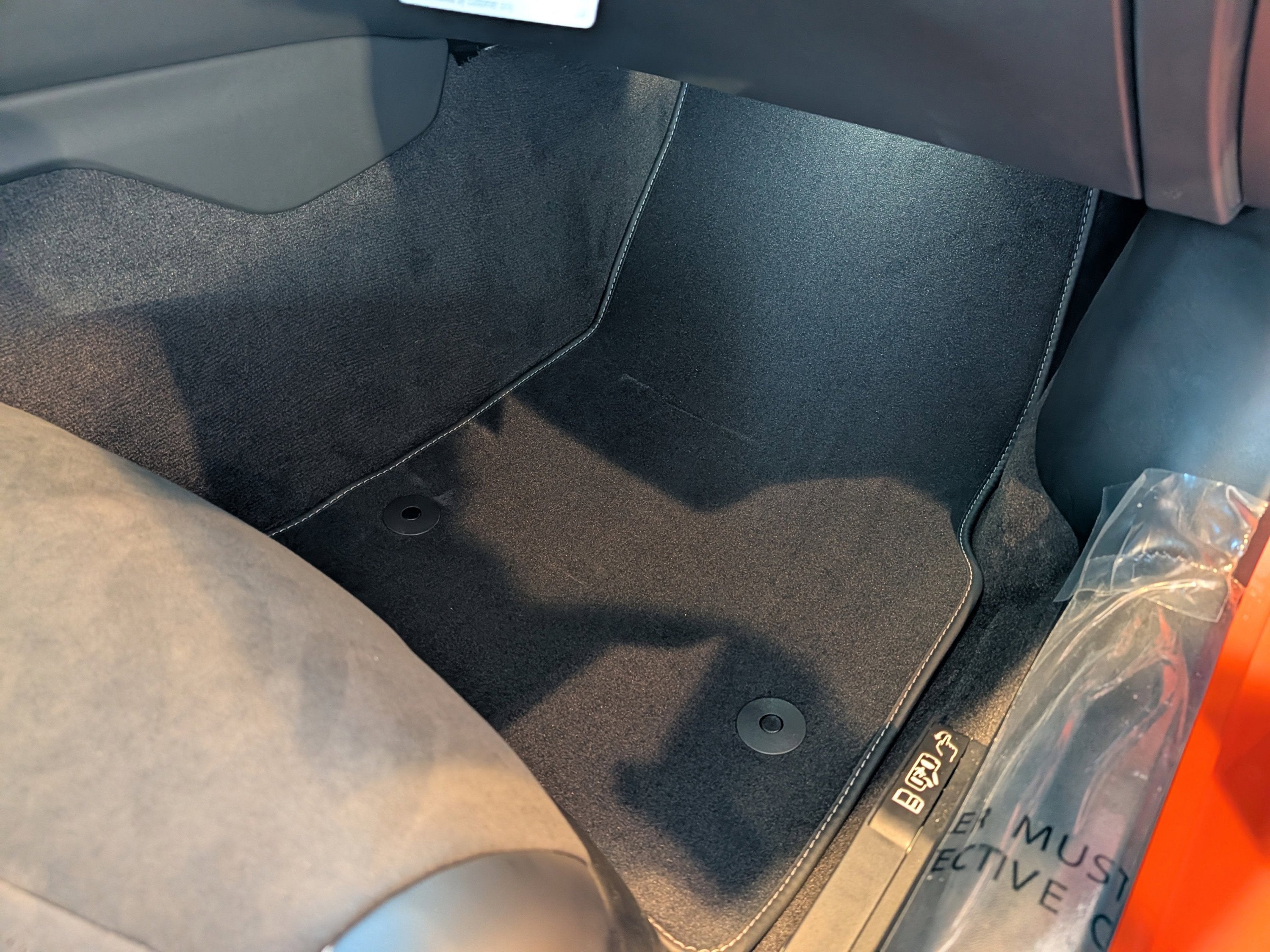 - Orange-painted brake calipers