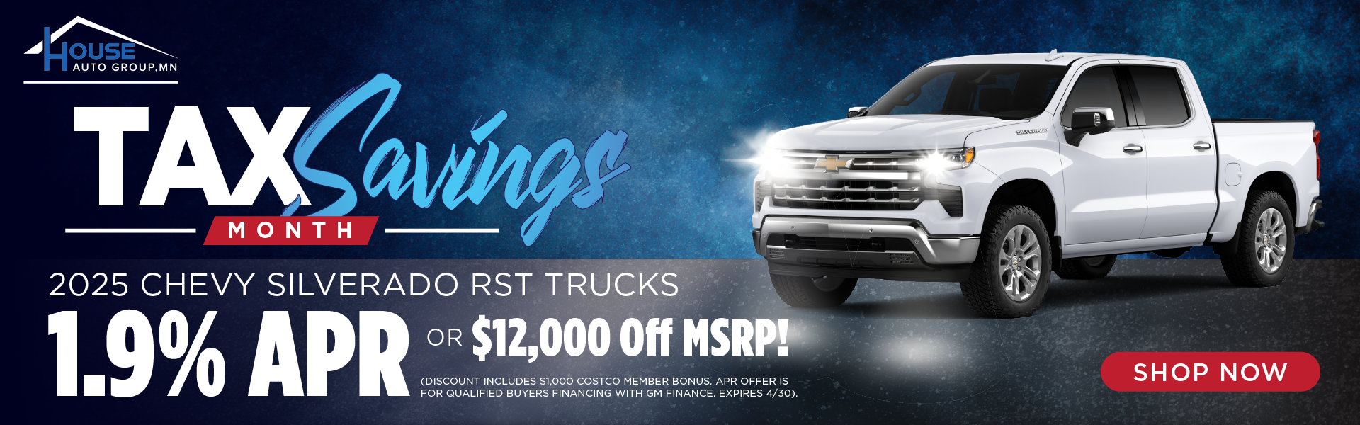 Discount includes $1,000 Costco Member bonus. APR offer is for qualified buyers financing with GM Finance. Expires 4/30
