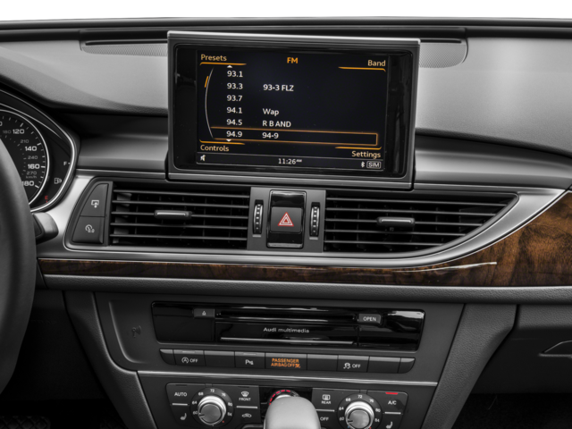 - Radio: Audi MMI Navigation Plus w/MMI Touch -inc: Google Earth navigation, Audi smartphone interface (Apple CarPlay/Android Auto), Bluetooth® streaming audio and wireless technology preparation for mobile phone, HD Radio technology, SD card slot w/64GB capacity (dual slots), SiriusXM satellite radio w/90-day trial subscription and 8" central display screen, control knob and buttons in center console that operates climate control, central locking, instrument cluster, vehicle diagnostics, cellular phone, navigation, CD and radio functions