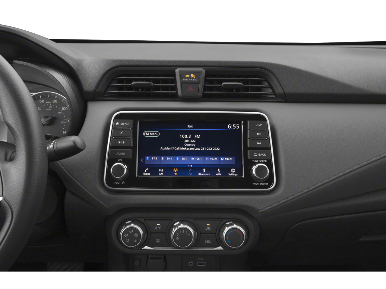 - Radio: AM/FM Audio System -inc: RDS, MP3, aux-in, 7" Advanced Drive-Assist Display, NissanConnect featuring Apple CarPlay and Android Auto, Bluetooth hands-free phone system, streaming audio via Bluetooth, interface for iPod and other compatible devices, hands-free text messaging assistant, Siri Eyes Free/Google Assistant voice recognition, 4 speakers, 12-volt DC power outlet and 3 USB ports (2-charge only)